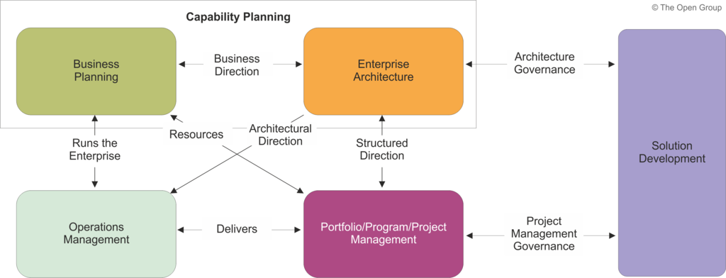 The TOGAF framework has to co-exist with and enhance the operational capabilities of other management frameworks that are present within any organization either formally or informally. In addition to these frameworks, most organizations have a method for the development of solutions, most of which have an IT component. The significance of systems is that they bring together the various domains (also known as People, Processes, and Material/Technology) to deliver a business capability.
