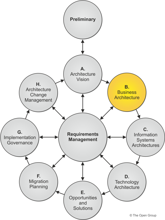 The order of the steps in Phase B as well as the time at which they are formally started and completed should be adapted to the situation at hand, in accordance with the established Architecture Governance. In particular, determine whether in this situation it is appropriate to conduct Baseline or Target Architecture development first, as described in Part III, 18. Applying Iteration to the ADM .